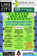 Cardiff Squash Centre is look forward to welcoming players and supporters to the 2023 Lake Macquarie Open. Entries close Wednesday 19th July 2022. Tournament cost will be $50 for non member Adults, $40 for members, $30 for juniors (U19) non members and $20 junior members. Membership is for members of Cardiff Squash Centre only.