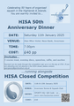 This year's event celebrates the 50th anniversary of HISA. A dinner is being held on the Saturday night to celebrate this occasion. Details as follows.